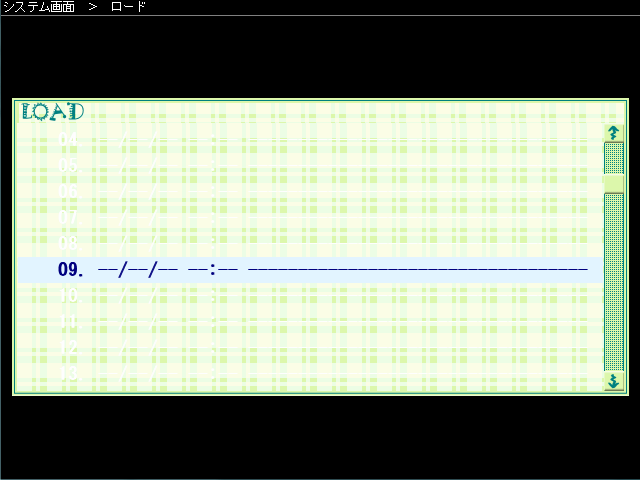 スクロールバー、ロード画面、セーブ画面、選択画面、シナリオ回想画面用のパーツ画像ファイルが入っています。